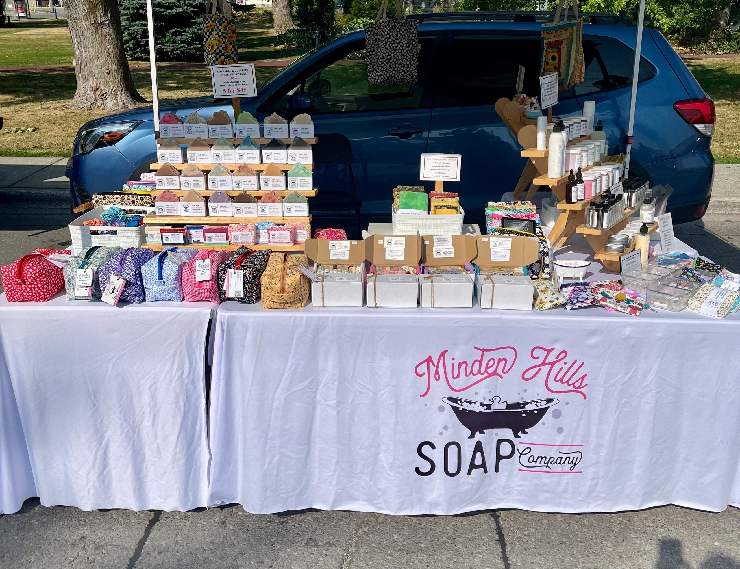 We’ve recently expanded beyond soap! You’ll now find our cozy quilted makeup bags, reusable market bags, and eco-friendly beeswax wraps—each one thoughtfully made to bring beauty and function to everyday living. Whether you’re treating yourself or picking up the perfect gift for family and friends, you’re sure to find something special at our booth.